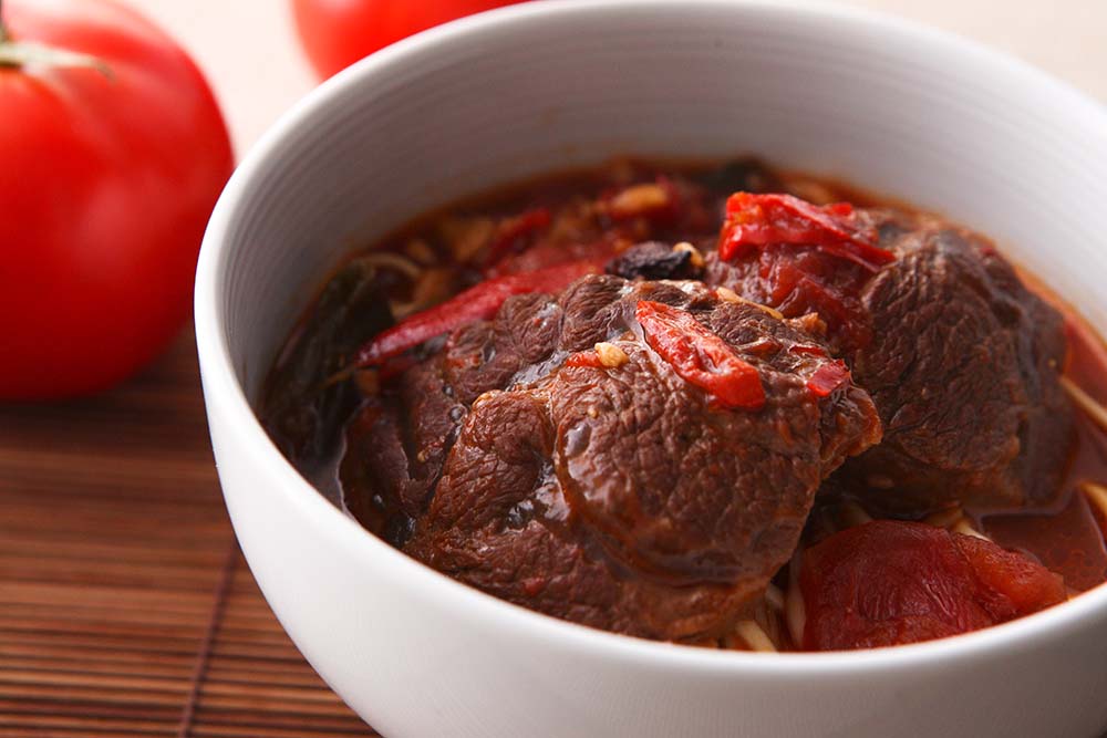 來自巴拉圭的健康草飼牛。腱子心含筋較多,筋紋呈花紋狀且含豐富膠質,耐長時間燉煮,適合紅燒、清燉或滷燉後切片食用。