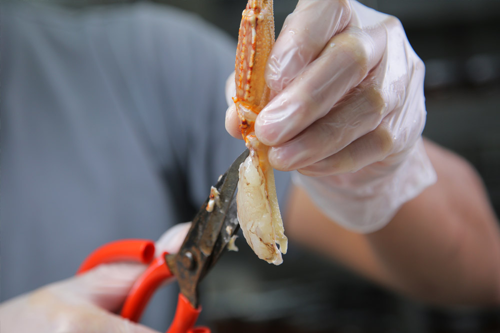 藉由經驗豐富的在地澎湖阿姨之手,從蟹群中挑選出體型相對較大的扁蟹,人工去殼處理,肥美蟹腿「純肉」呈現。只要約10分鐘、不拆封、流水解凍就能快速料理,泰式涼拌、快炒沙茶或煮海鮮粥,鮮味十足。