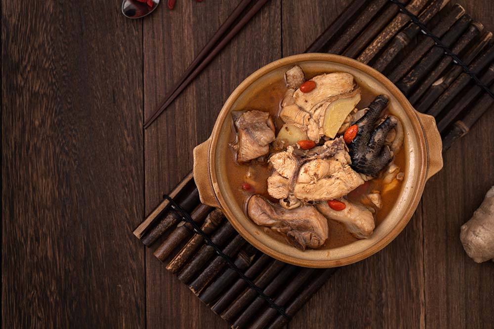 3. 加入米酒、冰糖、紅棗,開大火煮滾後,再加入滾水、枸杞以中火再煮約10分鐘,檢查雞肉是否已熟透,並依喜愛的雞肉軟硬程度斟酌是否需要延長燉煮時間,最後加鹽調味,美味養生的麻油雞就完成囉!