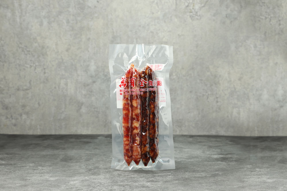 製作過程遵循傳統港式臘味工法,歷經調味、風乾與兩道低溫烘焙程序,將肉香與酒香完整封存於腸衣之中,使油脂分布均勻、口感彈嫩不乾柴。料理方式簡單多元,切片蒸熟即可配白飯享用,或與青菜、蒜片小火拌炒讓油香自然釋出,也能切丁加入炒飯或煲仔飯中,輕鬆完成香氣十足的家常好菜。