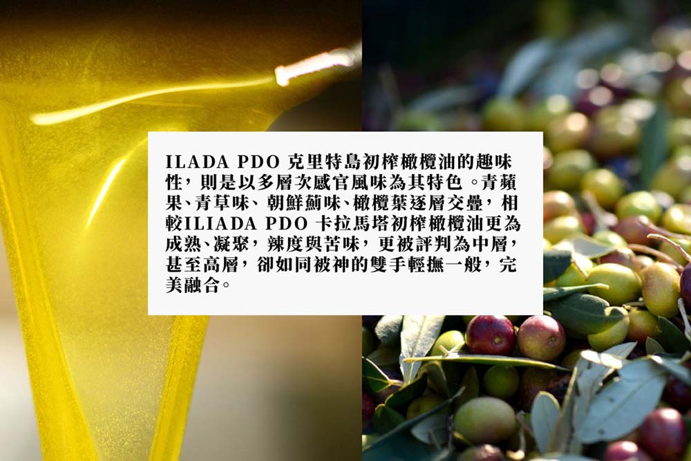 伊利亞達(ILIADA)是來自希臘的高品質橄欖油,精選100%柯洛聶基(Koroneiki)單一品種橄欖,栽種於被譽為「神話之島」的克里特島。全年充足日照與愛琴海北風吹拂,孕育出飽滿豐盈、風味純淨的橄欖。