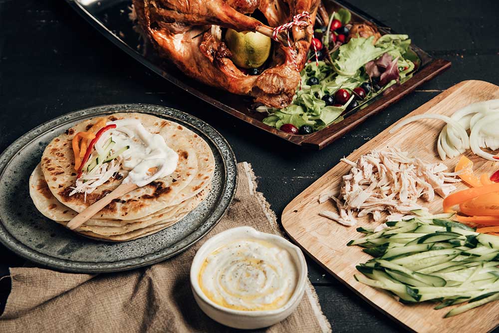 〈希臘風火雞肉蔬菜優格烤餅〉